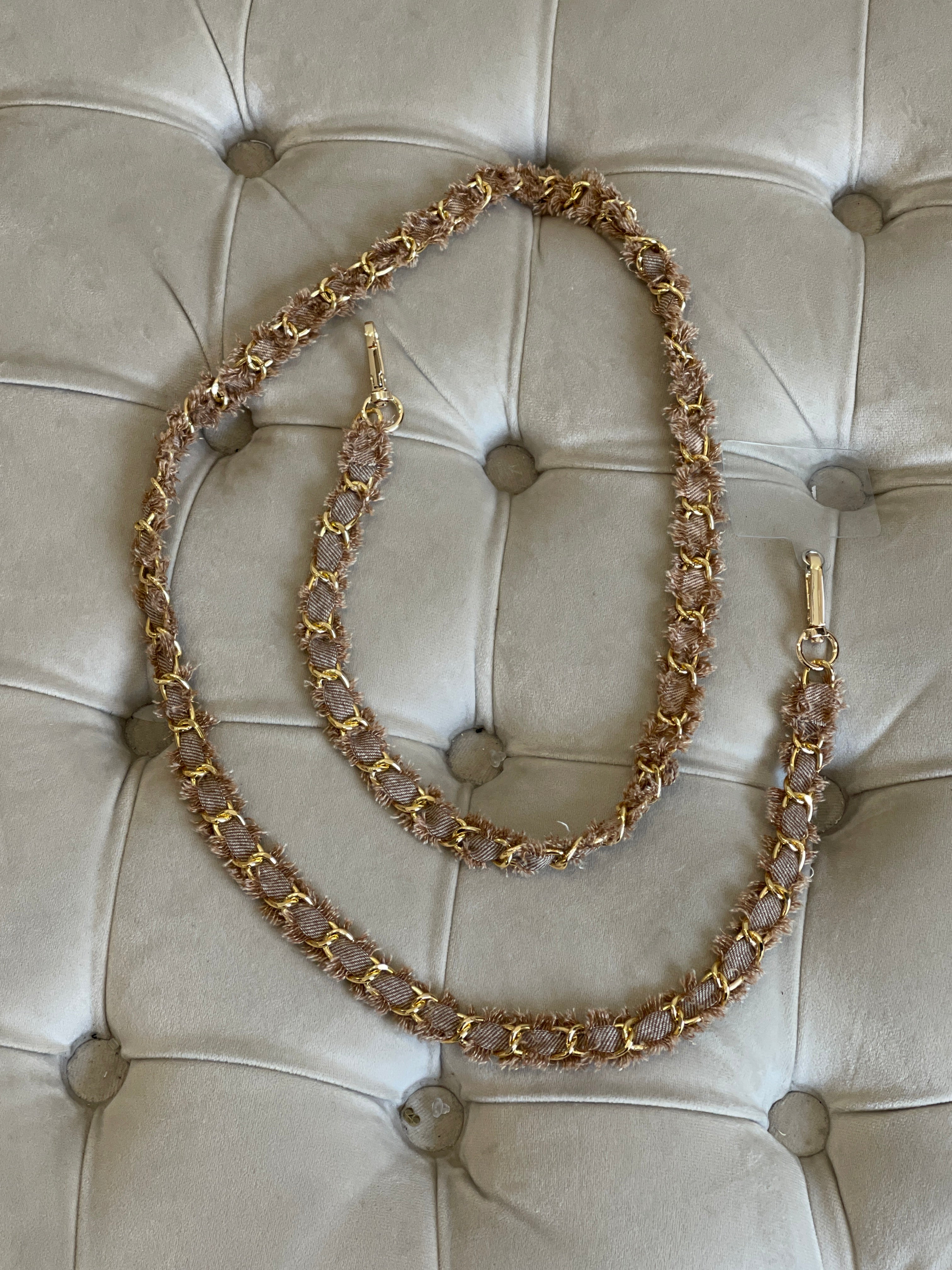 Chaîne téléphone marron clair et or