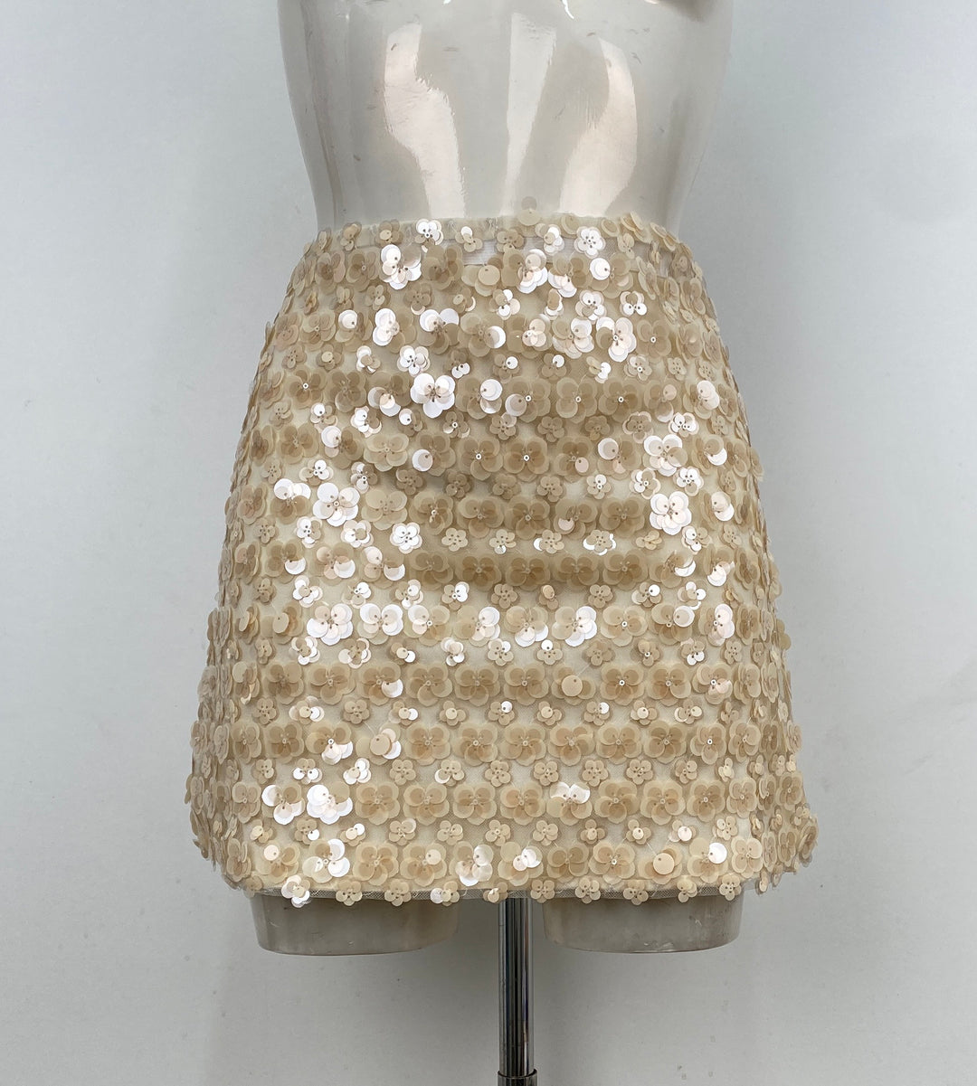 Jupe sequin fleuri beige