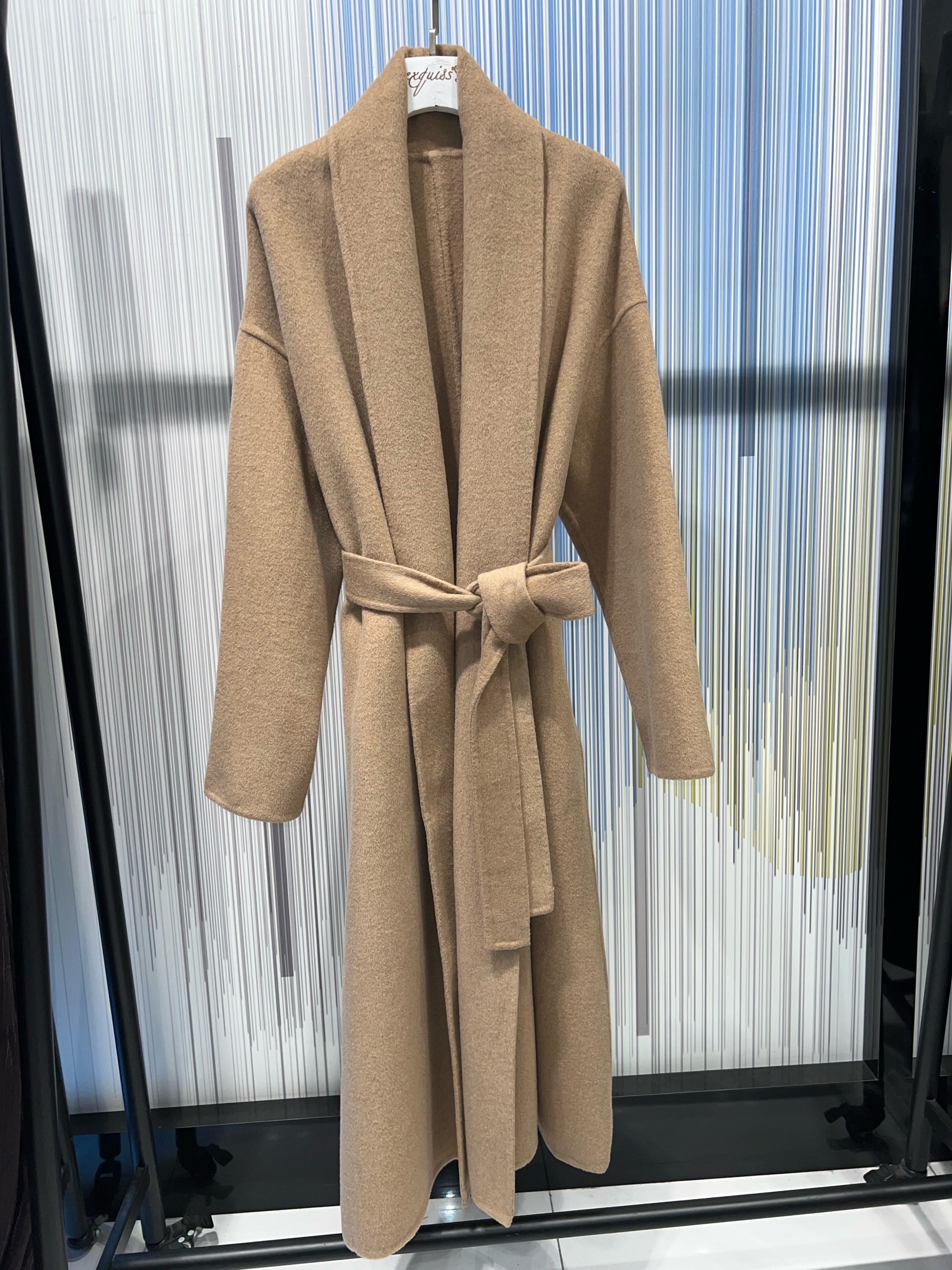Manteau genoux Taupe poches et boutons marbrés 010(95cm)