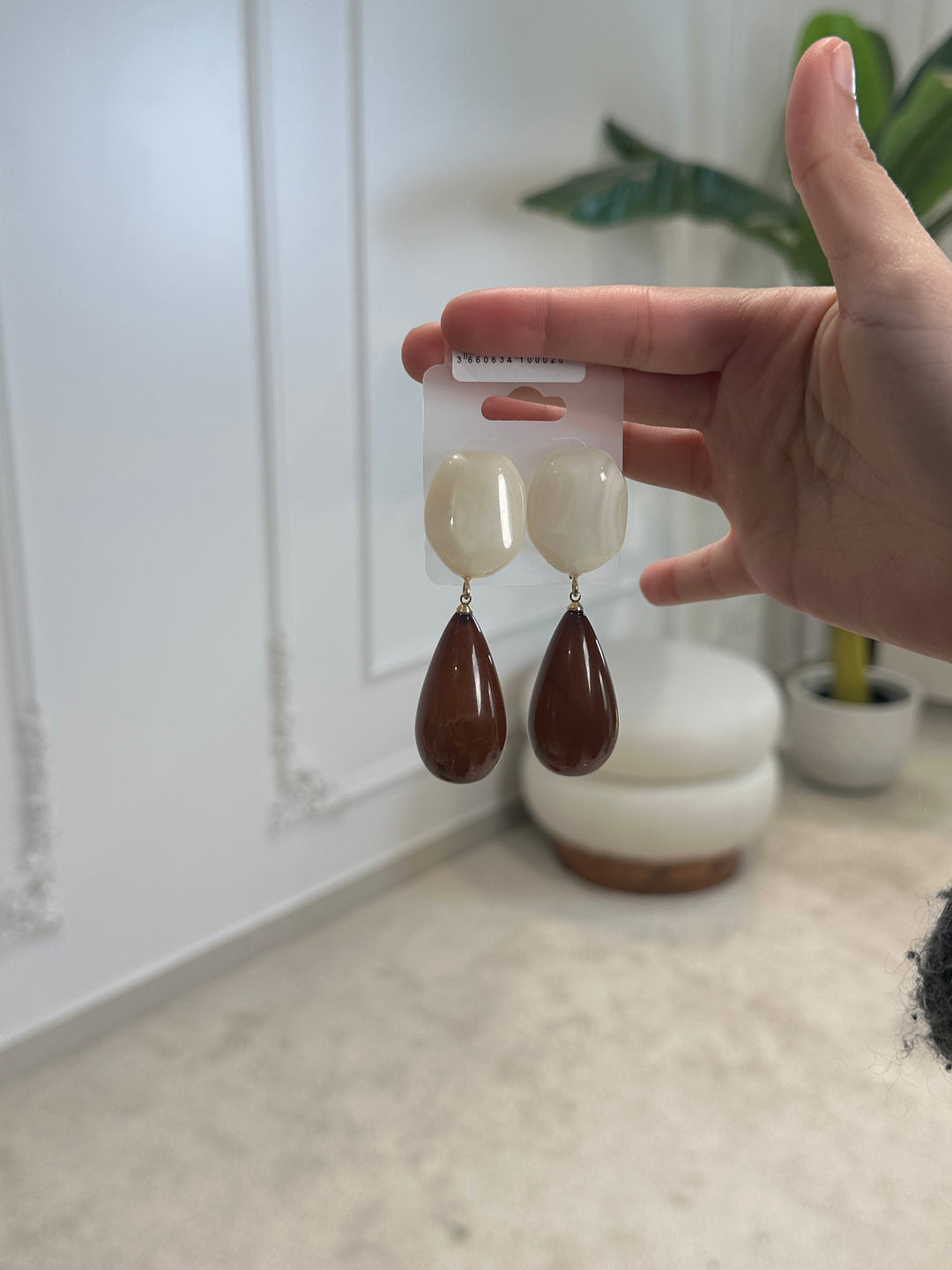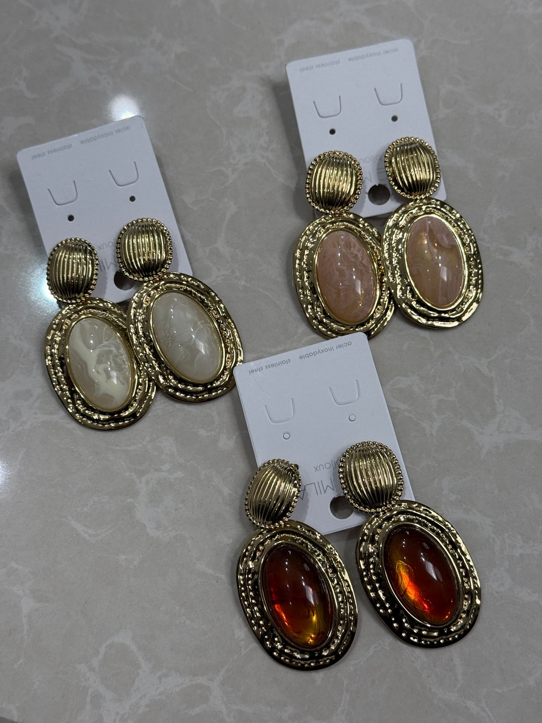 Boucles d'oreilles pierre Beige