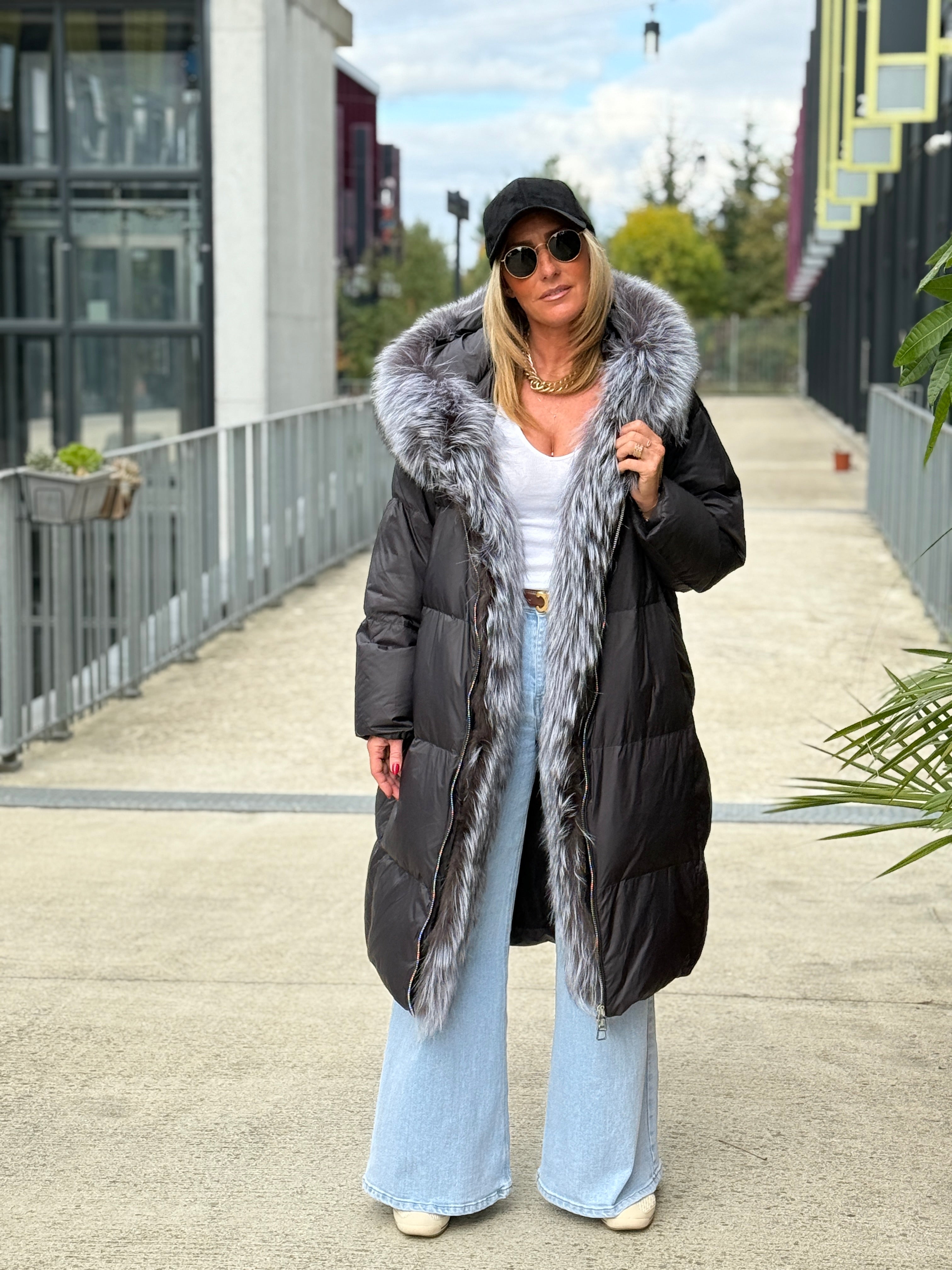 Cape doudoune Noir matelassé à capuche 1155