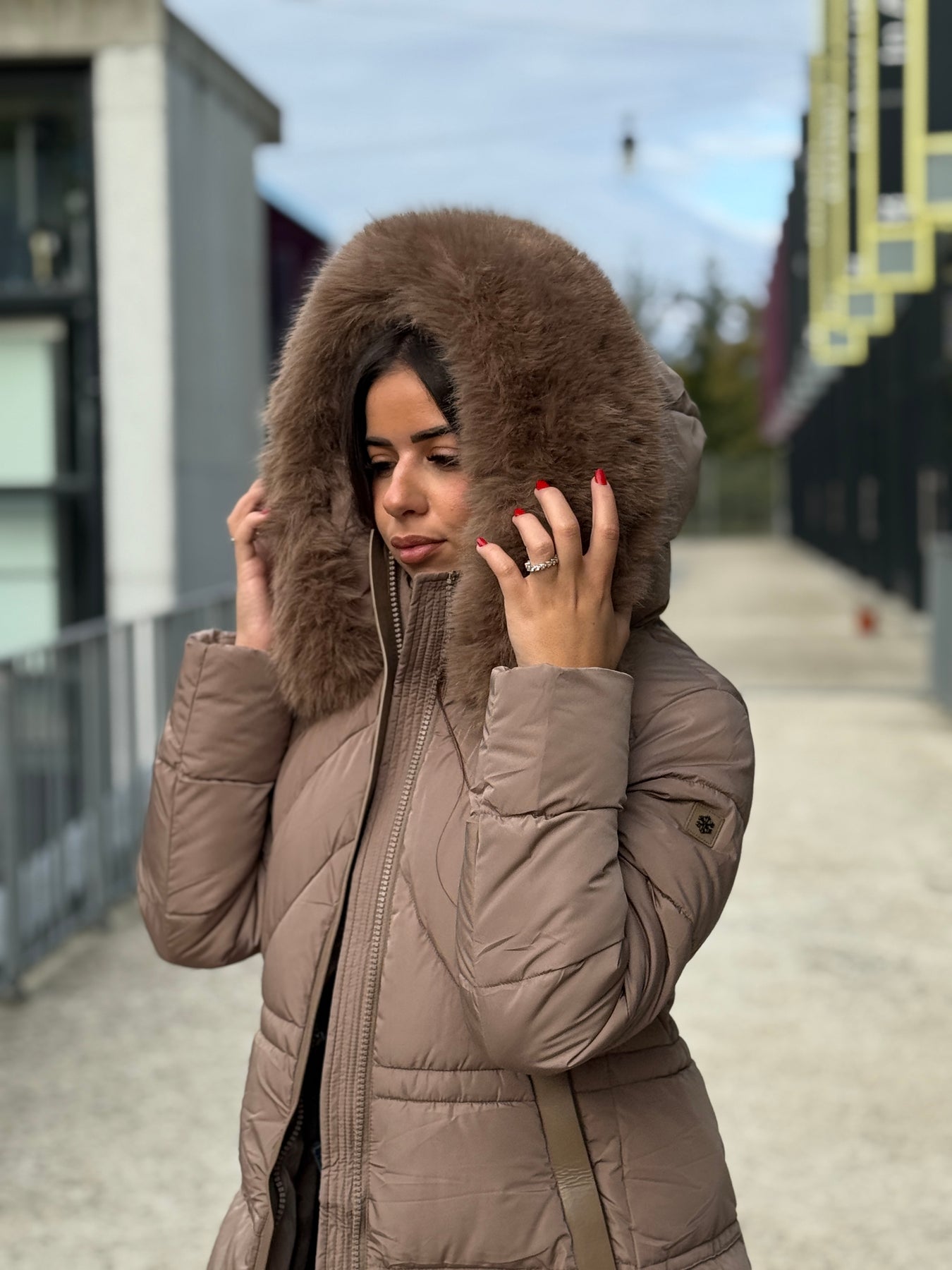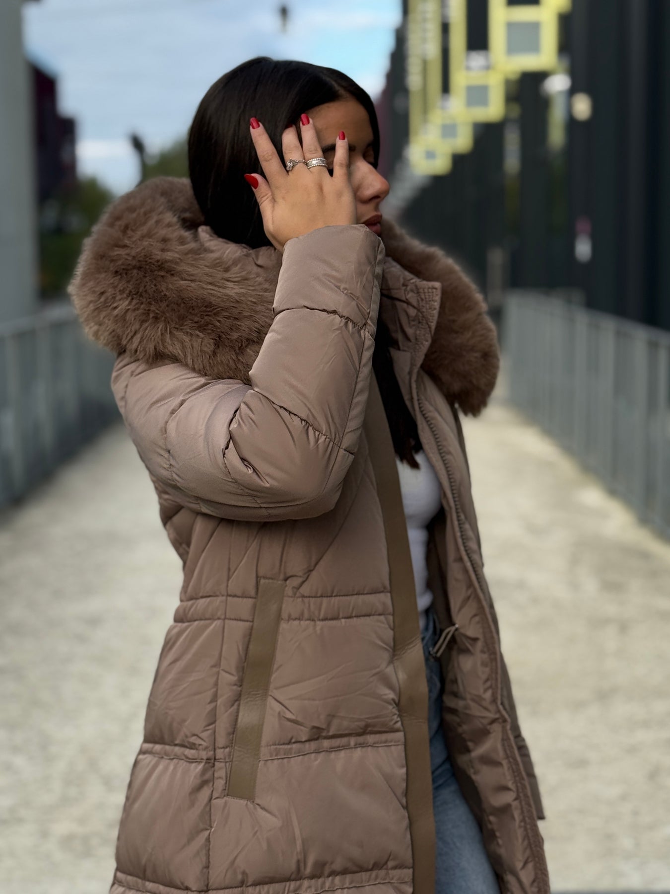 Doudoune longue capuche fourrure TAUPE 25510