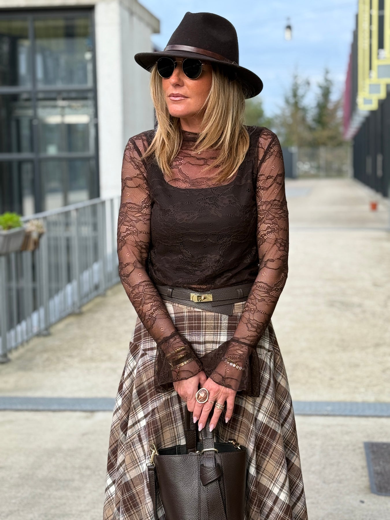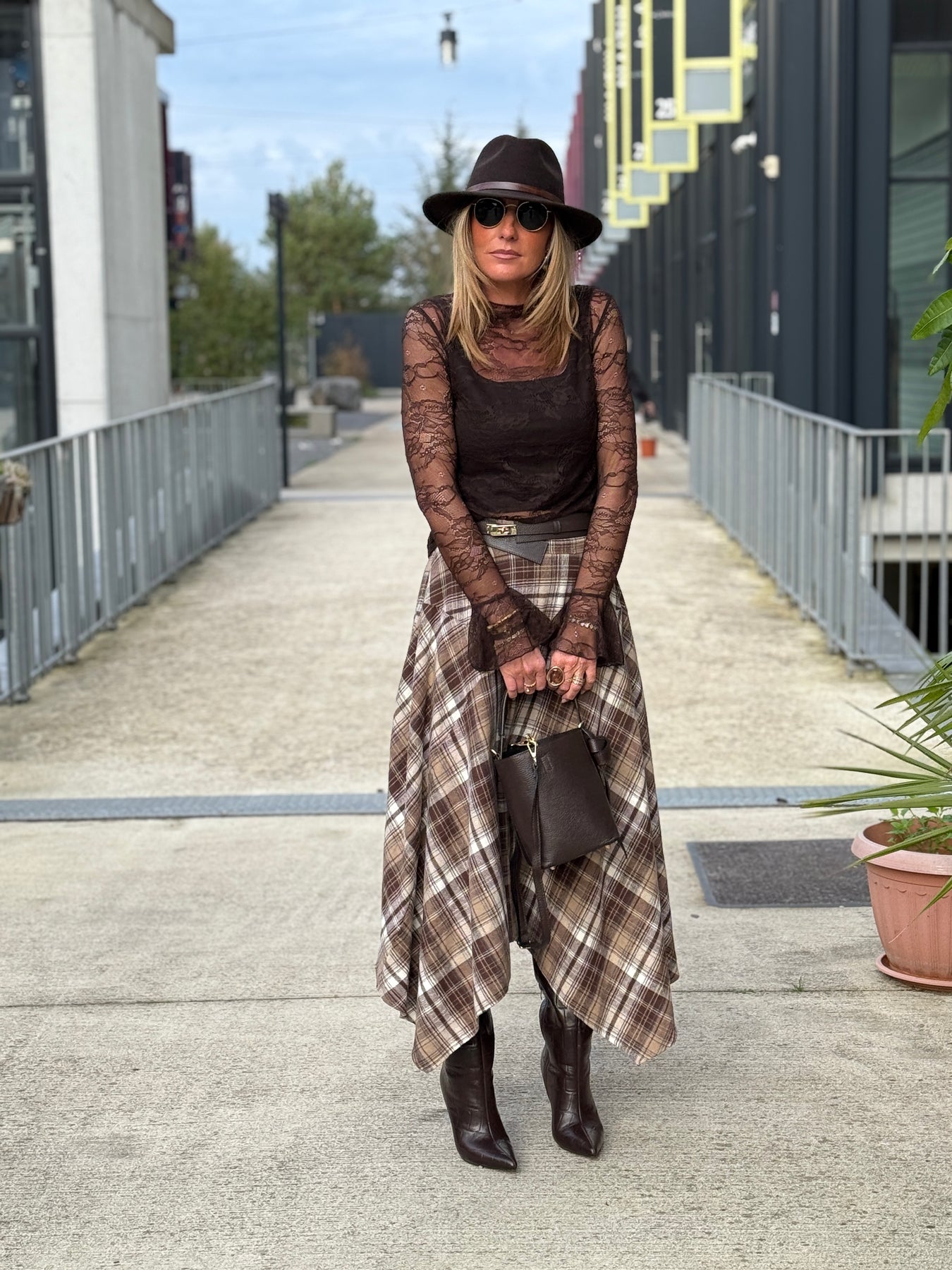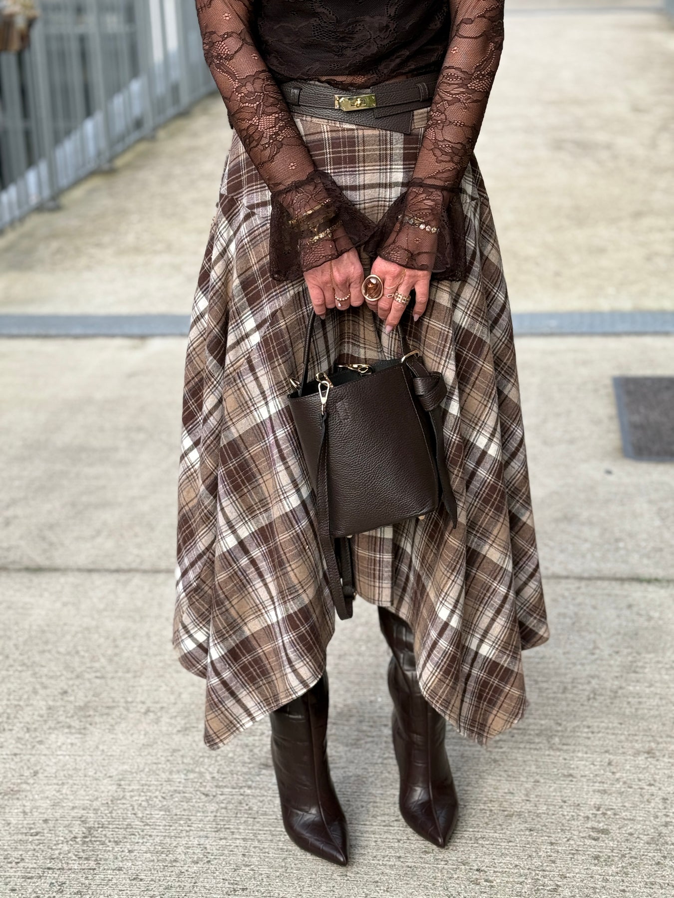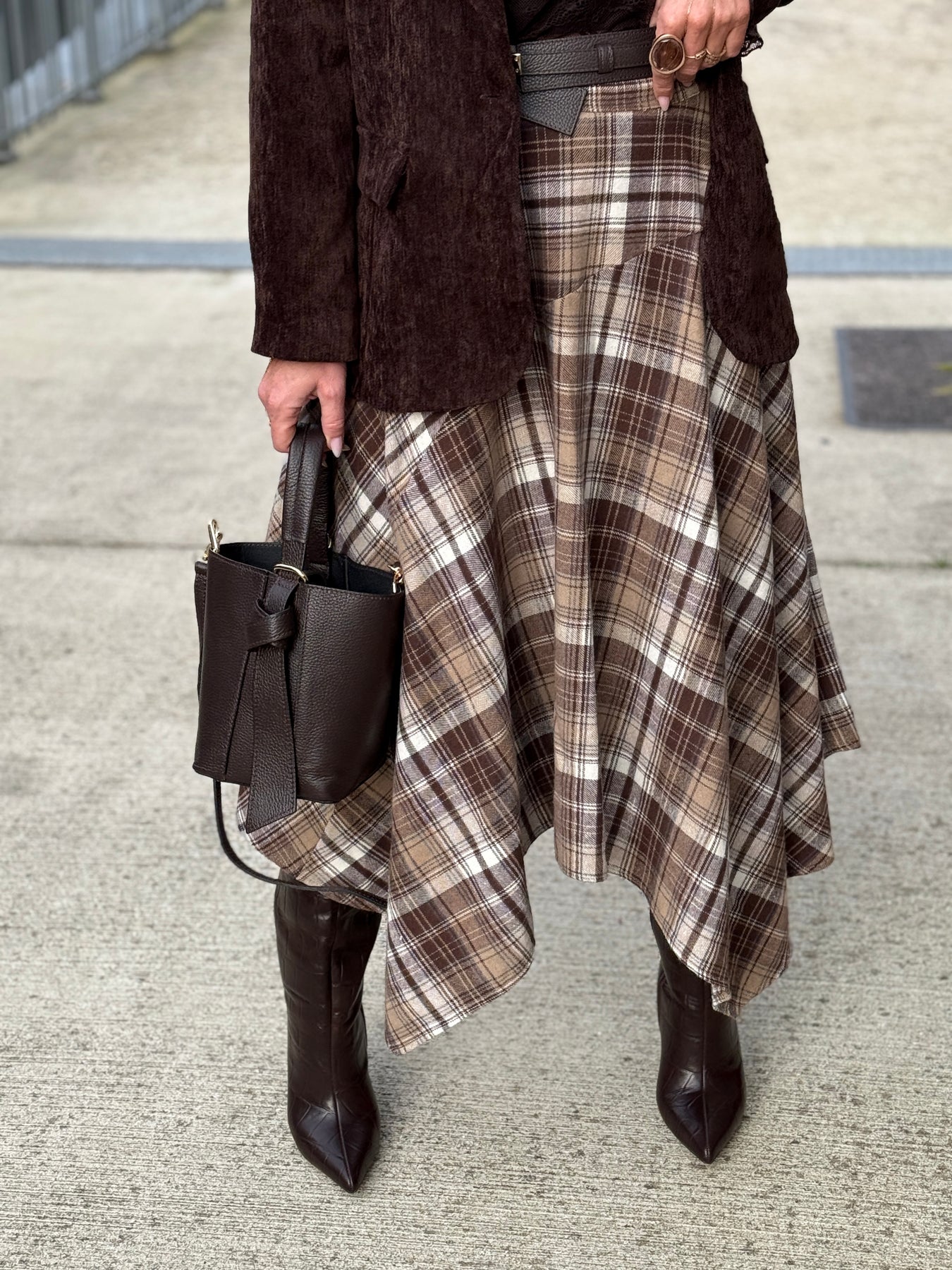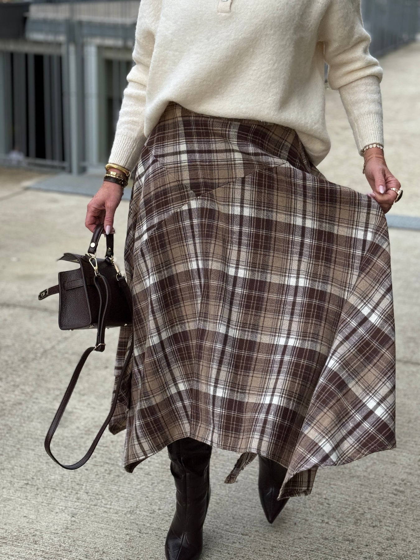Jupe asymétrique carreaux beige/choco