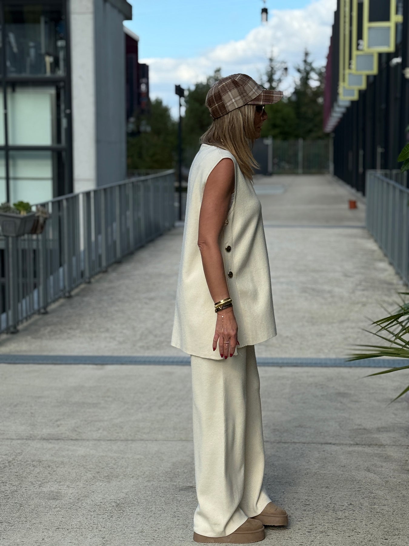Ensemble top + pantalon avec boutons Ecru 93006