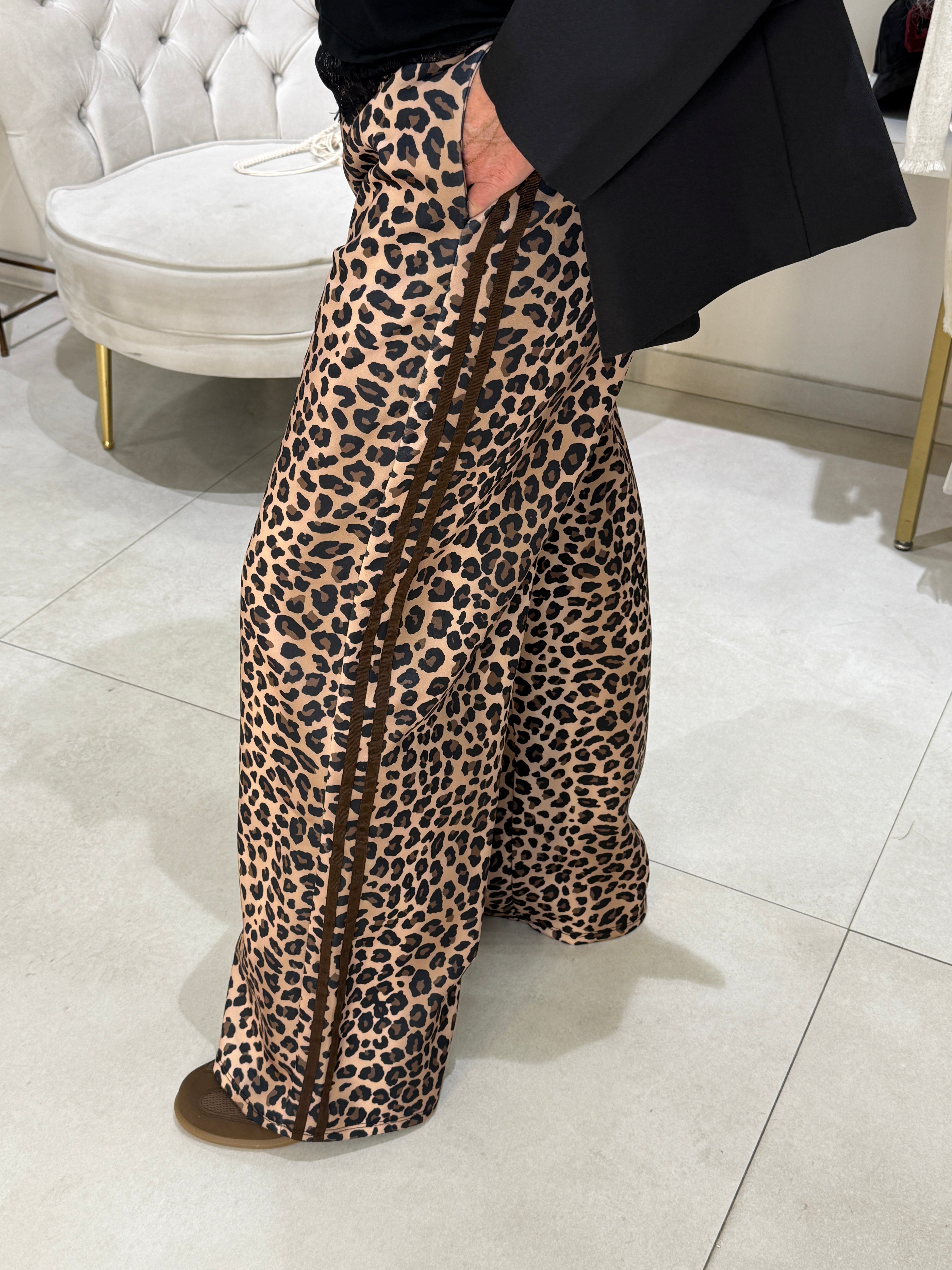 Pantalon jogging léopard bande Rose