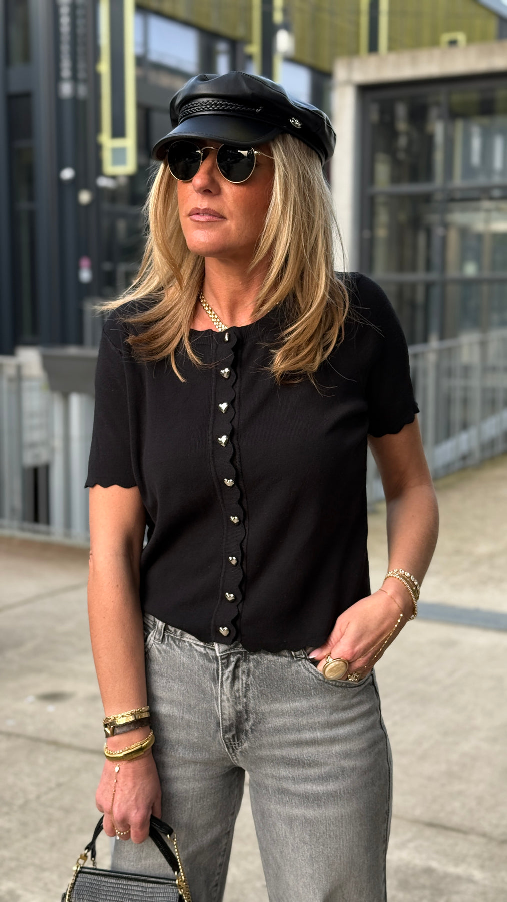 Top maille boutons cœurs