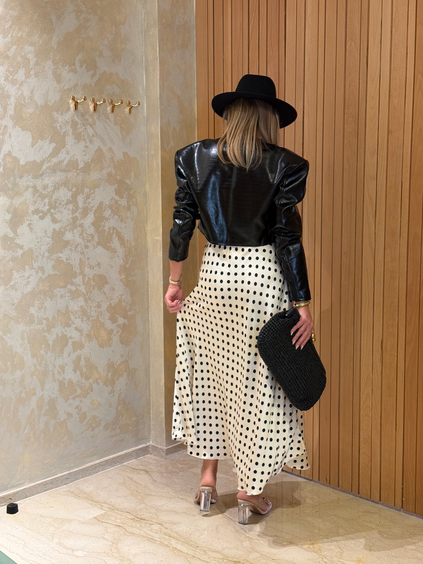 Jupe satin à pois 6121 Ecru