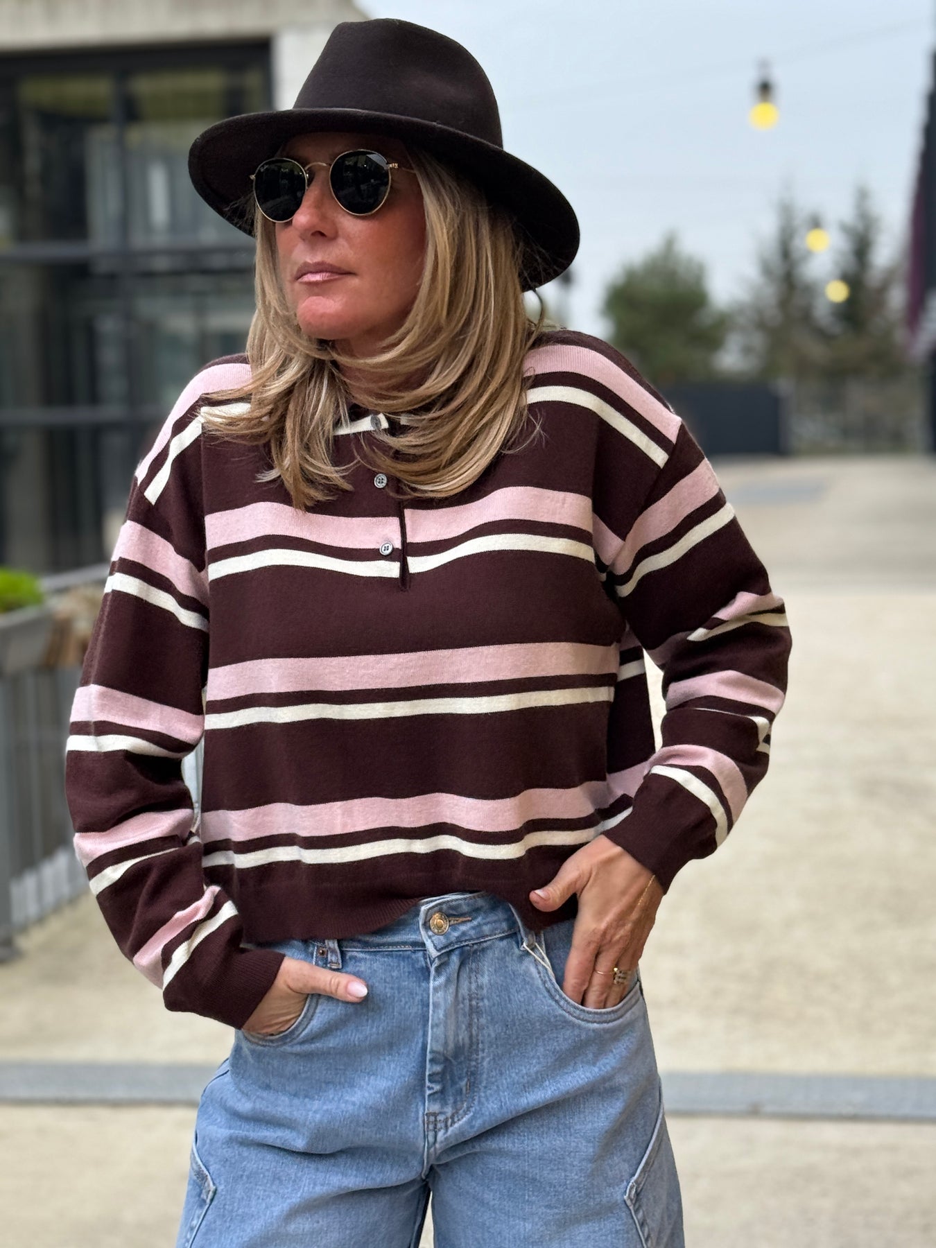 Pull rayure polo marron/rose 698