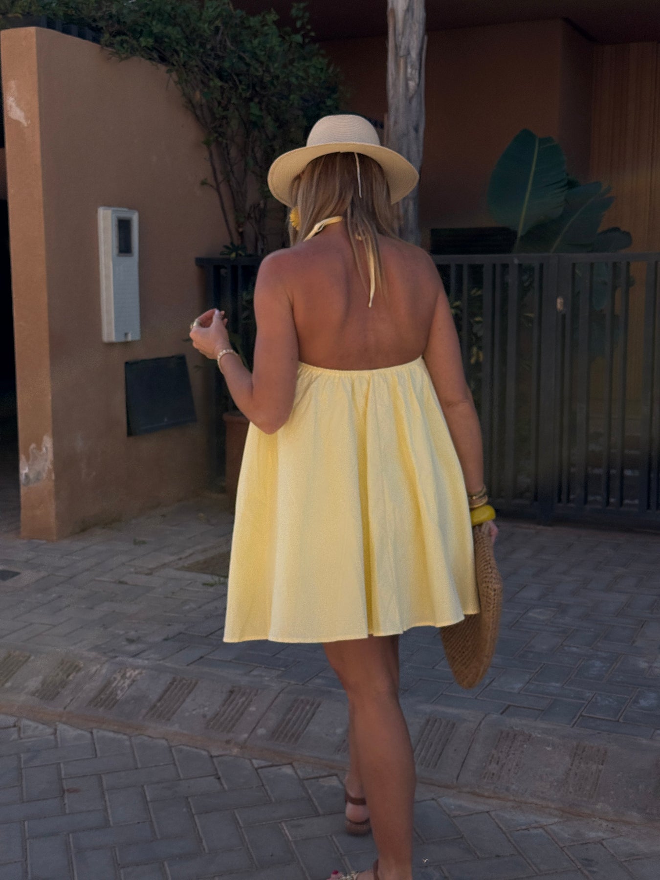 Robe courte à dos nus jaune 9506